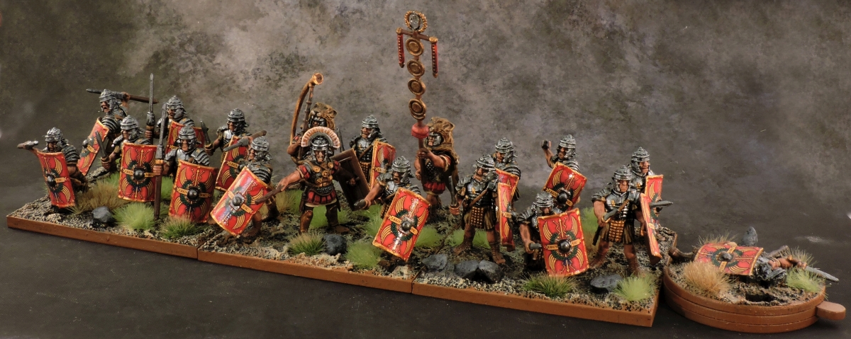 The ancients period covers a large portion of human history, from the beginning of organised civilization to approximately the fall of the Western Roman Empire. Players and rule systems will argue endlessly about the precise year of the end point, partly because the dividing line is definitely blurry. The key feature of this period is that battles are fought and decided primarily by the physical force of formed unit. Different sub-periods emphasize specialised fighting styles such as the chariots of the early Egyptians, the Greek phalanxes and the Roman Legions but the fundamental dynamics remain the same: Warriors in formations trying to push back and ultimately rout opposing formations. With some exceptions, cavalry was a support force during this period and battles were decided by the fighting prowess, discipline, mass and morale of infantry units.