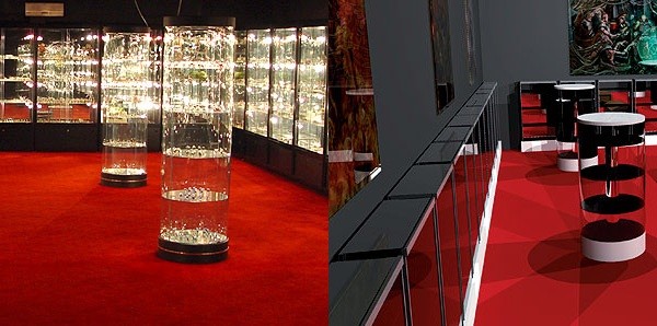 The columns are illuminated from top to bottom by two vertically mounted low-UV “warm white” LED light strips (to prevent bleaching and give a lighting colour rendering index similar to sunlight). A small reflector barrier prevents direct visibility of the LED strips from the front. Tempered glass doors secured by strong magnets provide protection from dust and kids.