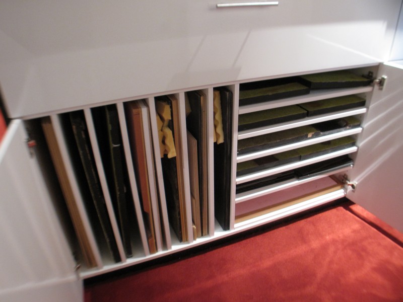 Terrain and photo section with small component drawers (top) for scatter and bits, as well as larger item storage in the main drawers in the cabinet.
