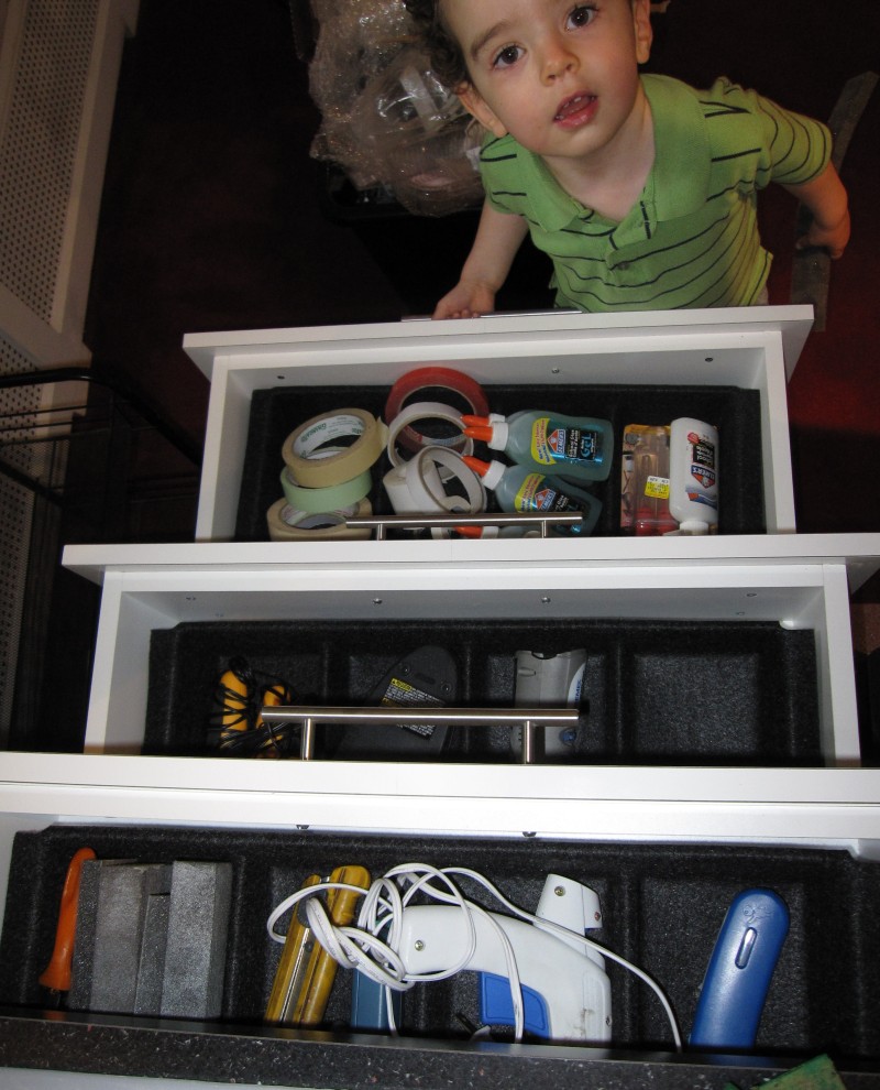• Kid-security for each cabinet and the whole room (wide door for entry of larger terrain items).