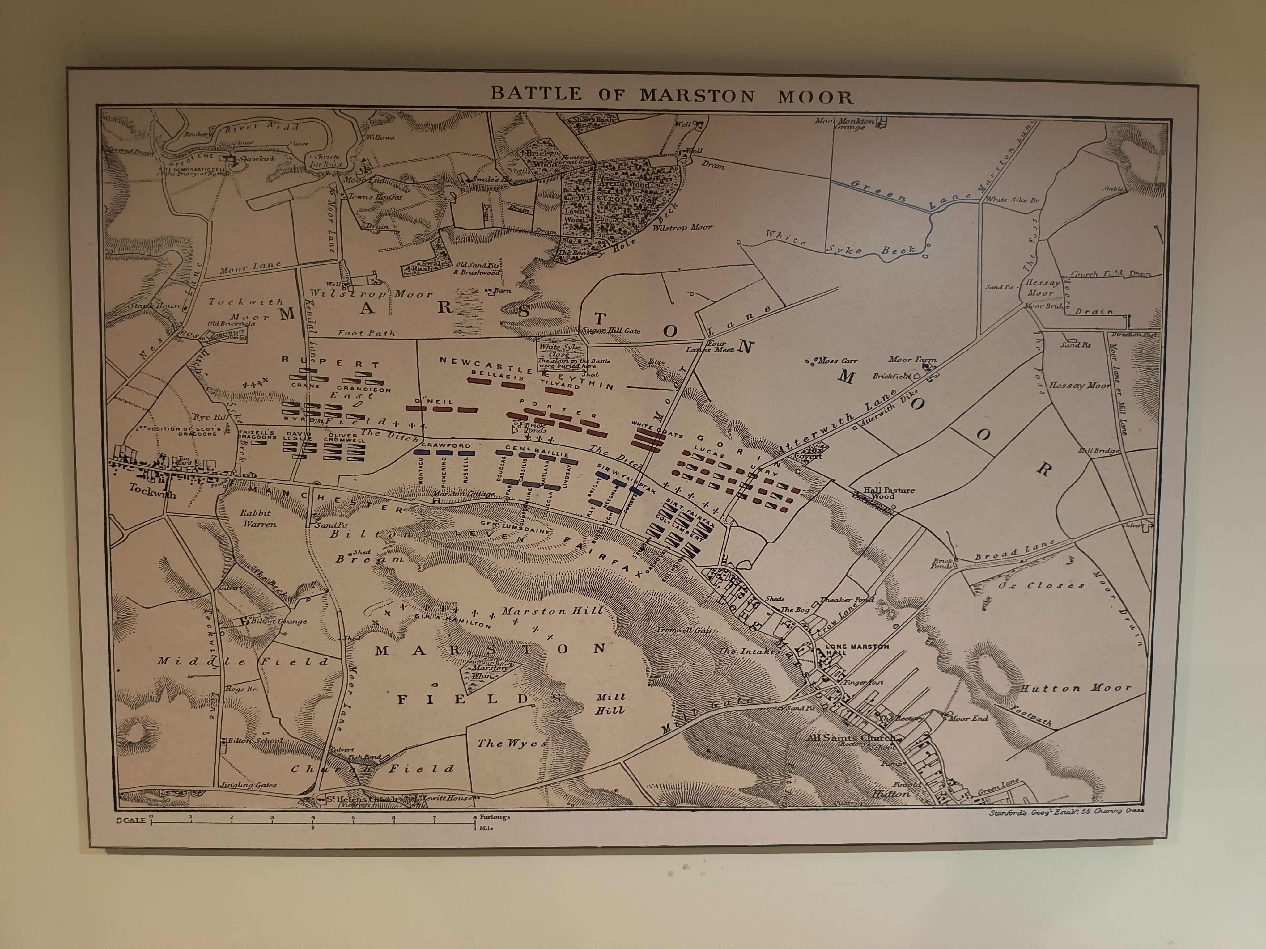 Marston Moor Map (40″x28″, framed rear area is 36″x24″ grey urban debris).
