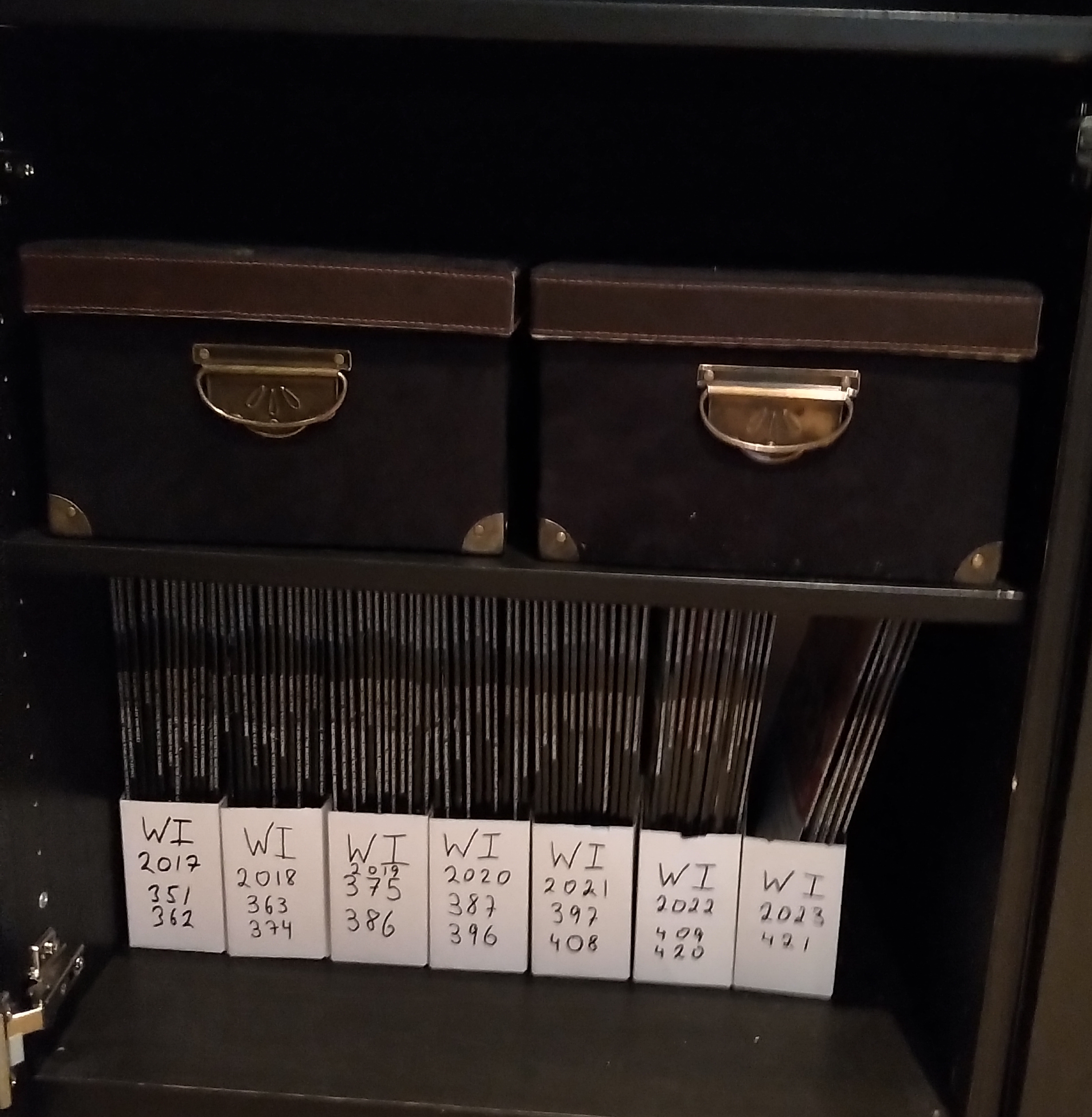 Storage shelf, each holding three banker boxes full of long term items that I will get around to eventually…