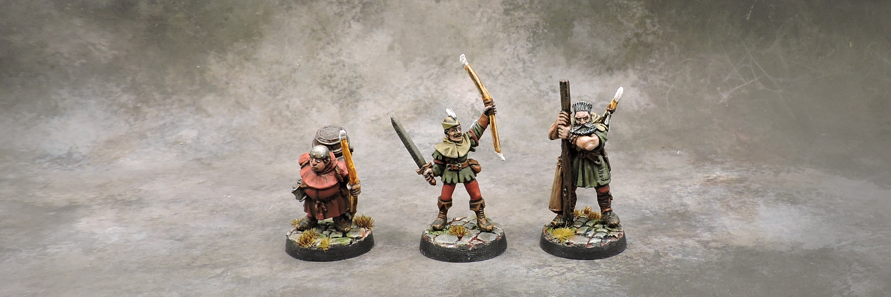 Forresters: I had some very old figures of Games Workshop’s “Robin Hood” clone from the 90s so I added these and some more printed archers as a small Forrester contingent.