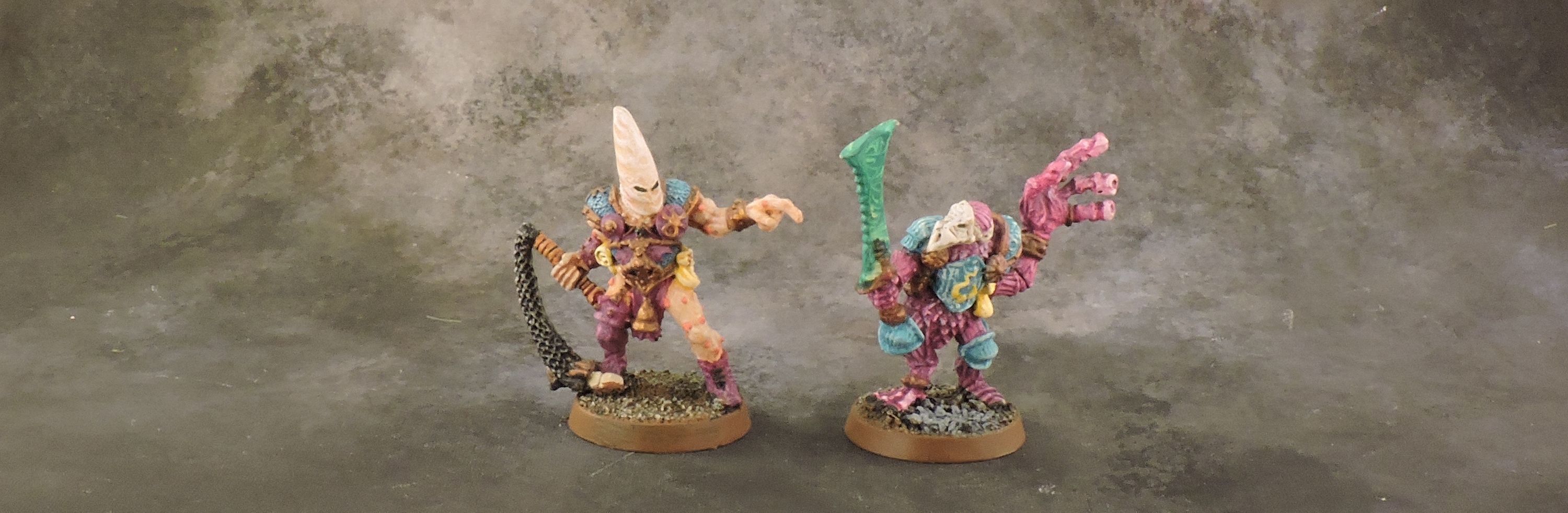 Gortrek & Felix: Made famous by the series of novels by William King from the Black Library, Gortrek Gurnisson and Felix Jaeger wonder the Old World to slay mighty monster. They sometimes appear in Mordheim and have been known to slay entire warbands that get in their way. The figures are Warhammer collector items that I picked up at some point in the distant past.