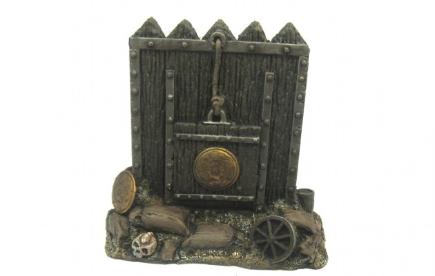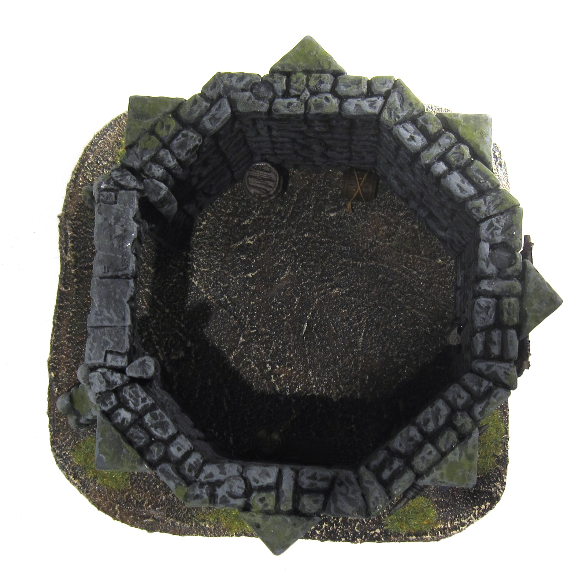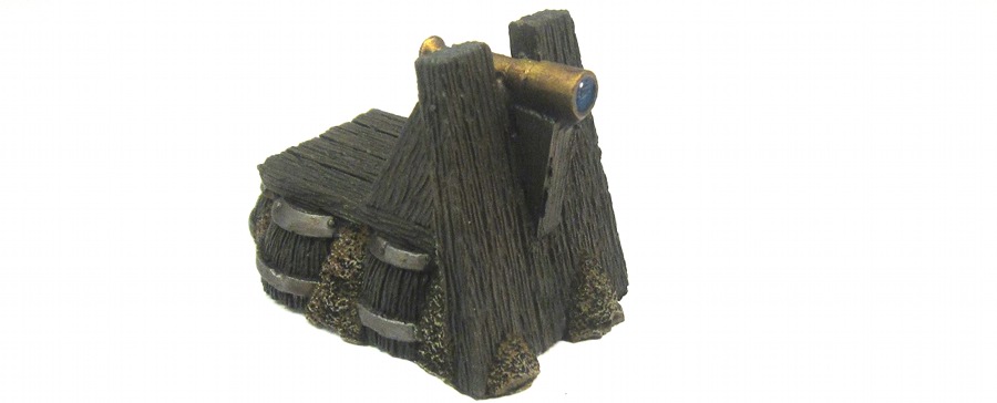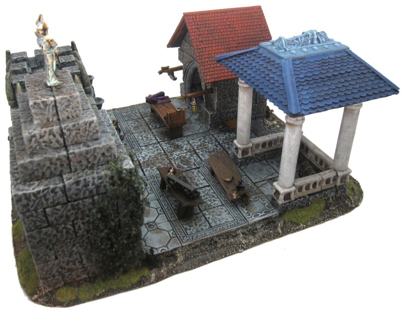 The Bastion is yet another Hirst Art design called the Octagonal Fieldstone Tower. I modified the design of the firing slots a little bit and added a mighty organ gun on top of the gate. That should deter the mob… The top floor can be removed and the little half-floor comes out as well (all magnetised).