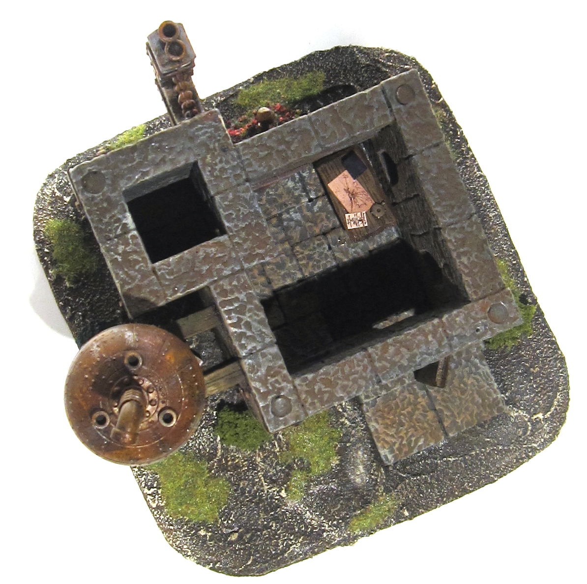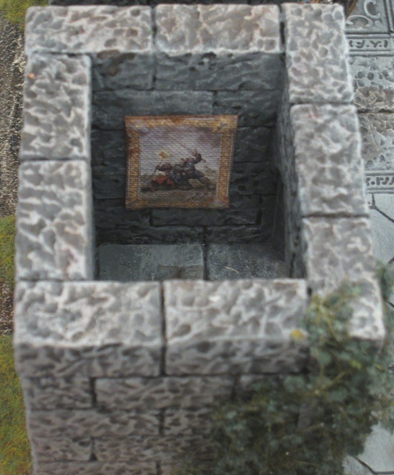 A very simple piece made from some leftover Hirst Art dungeon pieces and a very old Warhammer wizard painted up as a bronze statue.
