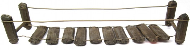Made from Hirst Arts stones, the bridge spans the river in my terrain boards (both grassland boards and the “mud/ruins” boards that I use for Mordheim.