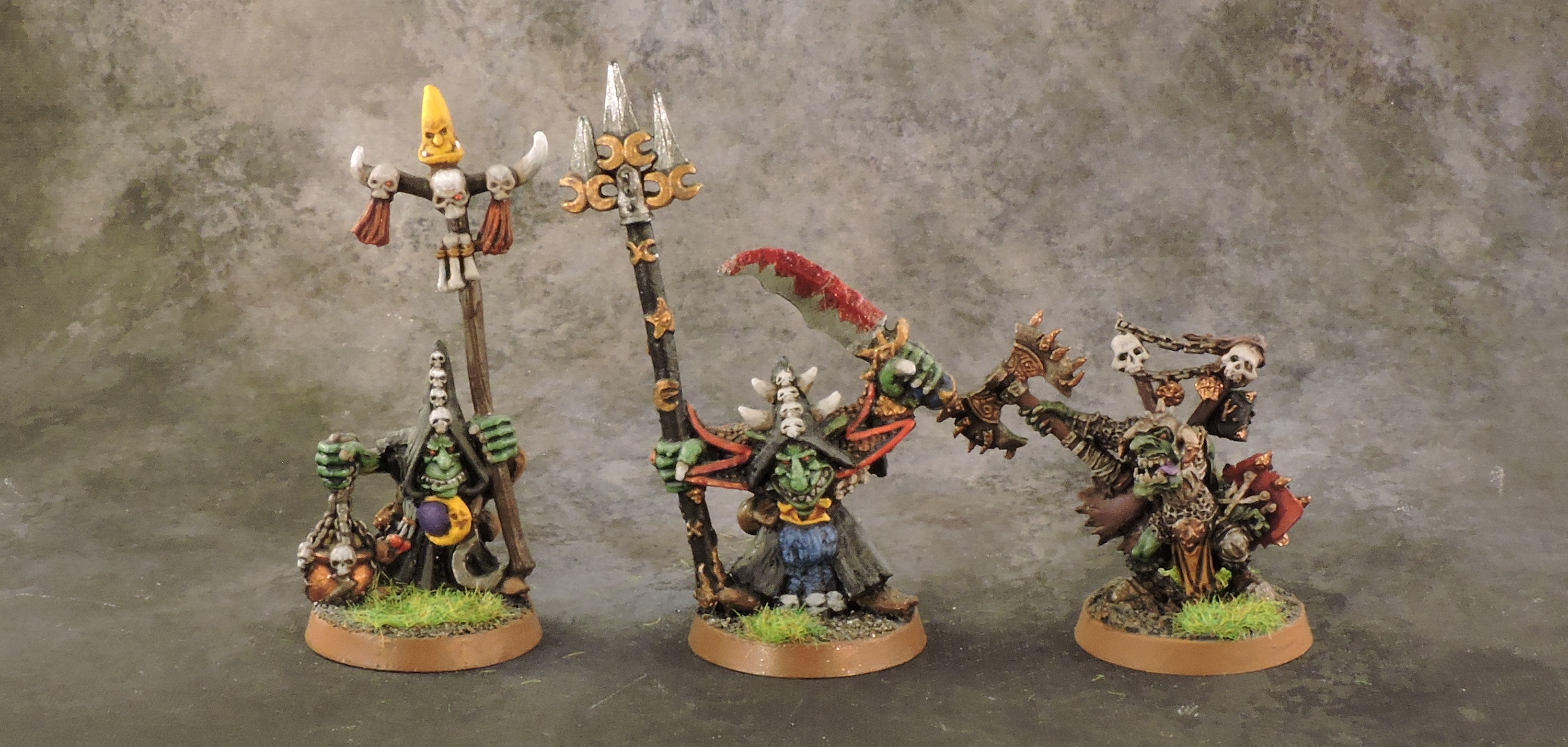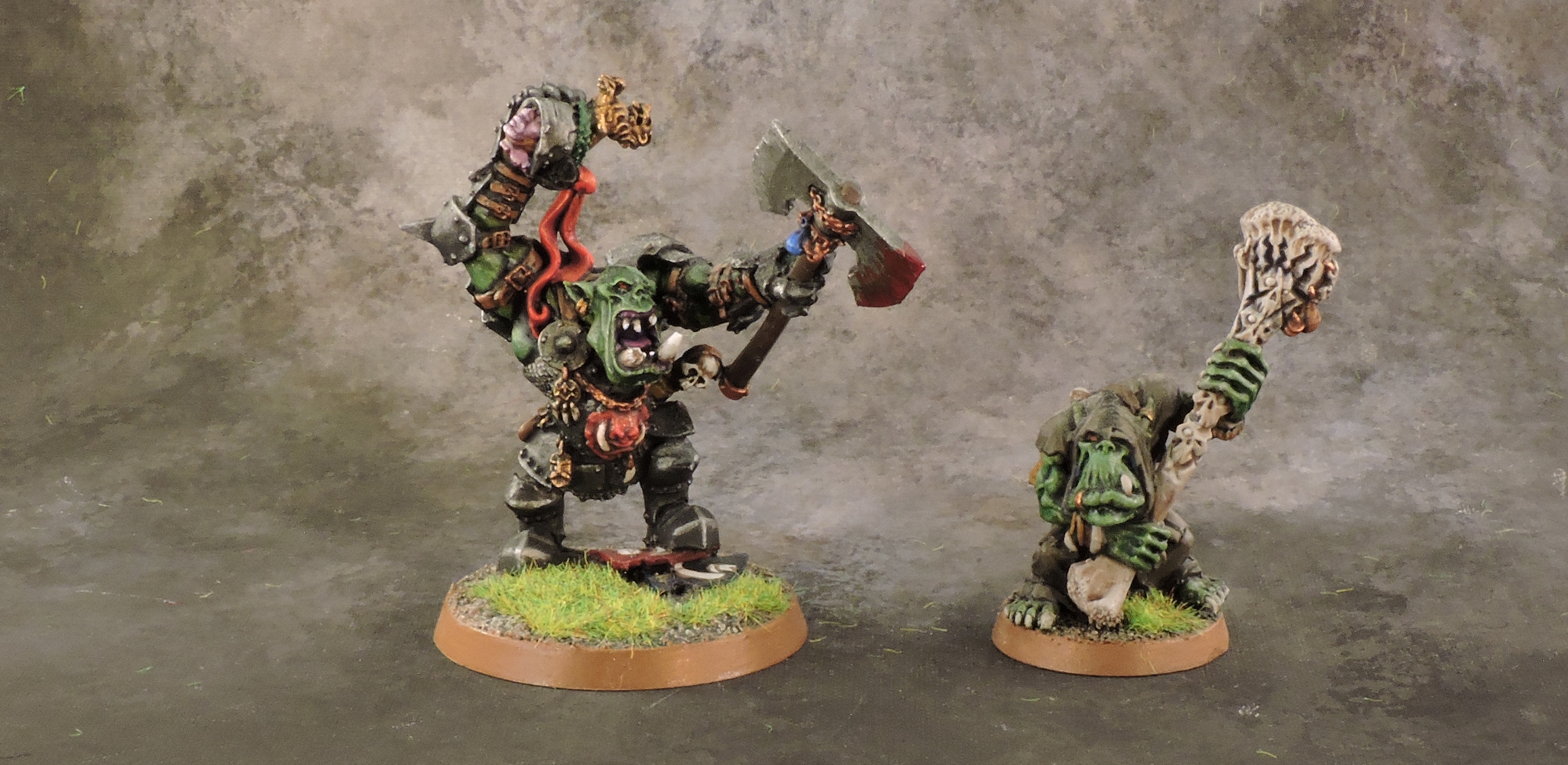 Monsters: No Orc and Goblin Warband would be complete without Trolls. In this case, two old-school River Trolls provide ample vomit-power.