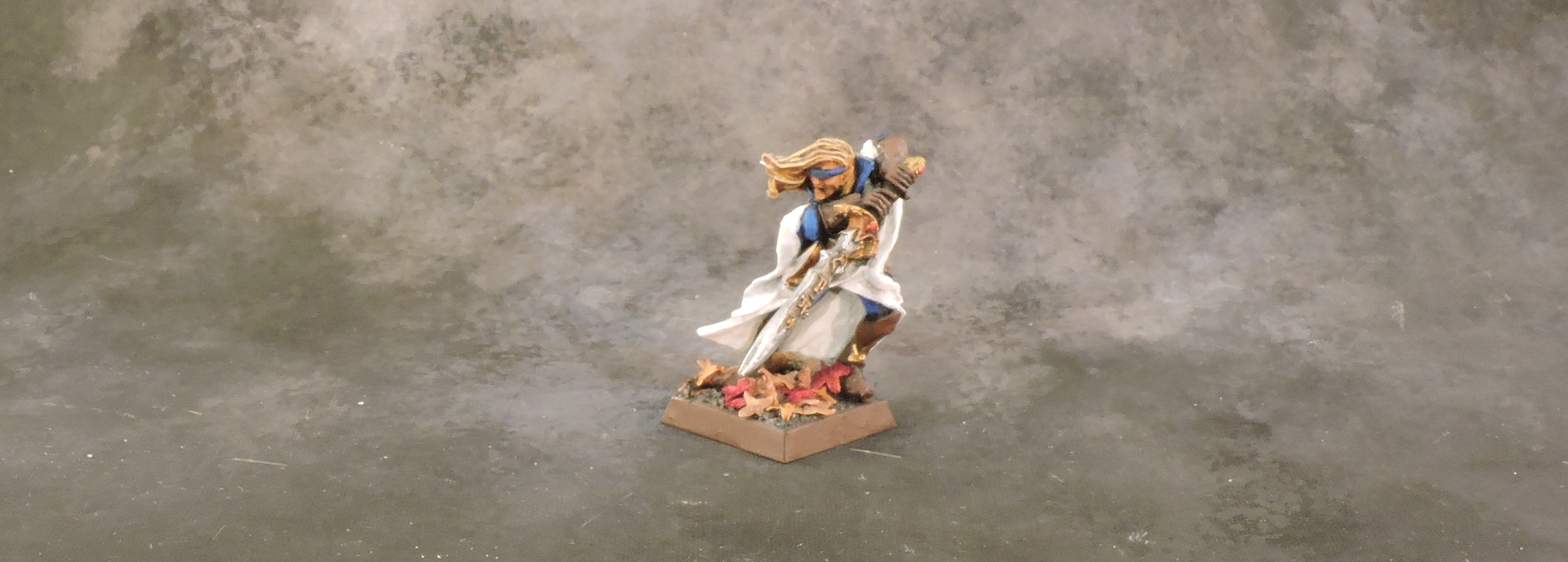 The paint scheme is the classic blue and white of the High Elves with autumn basing. Nothing fancy, but it does look nice on the tabletop.