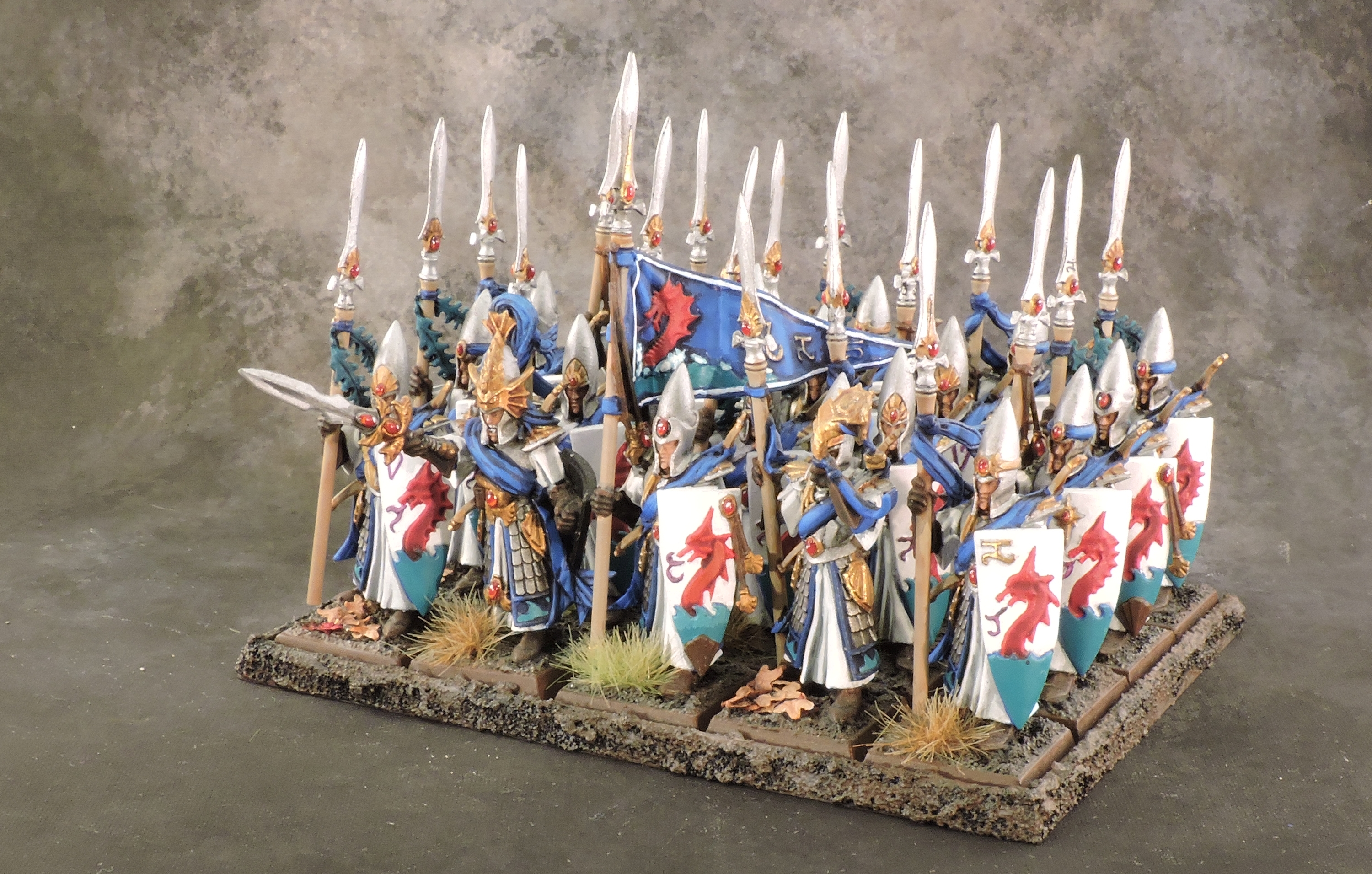 The elite formations of the High Elves were a pleasure to paint and add a bit of variety to the citizen units. 24 White Lions – including a couple of actual lions – can protect the general of the army.