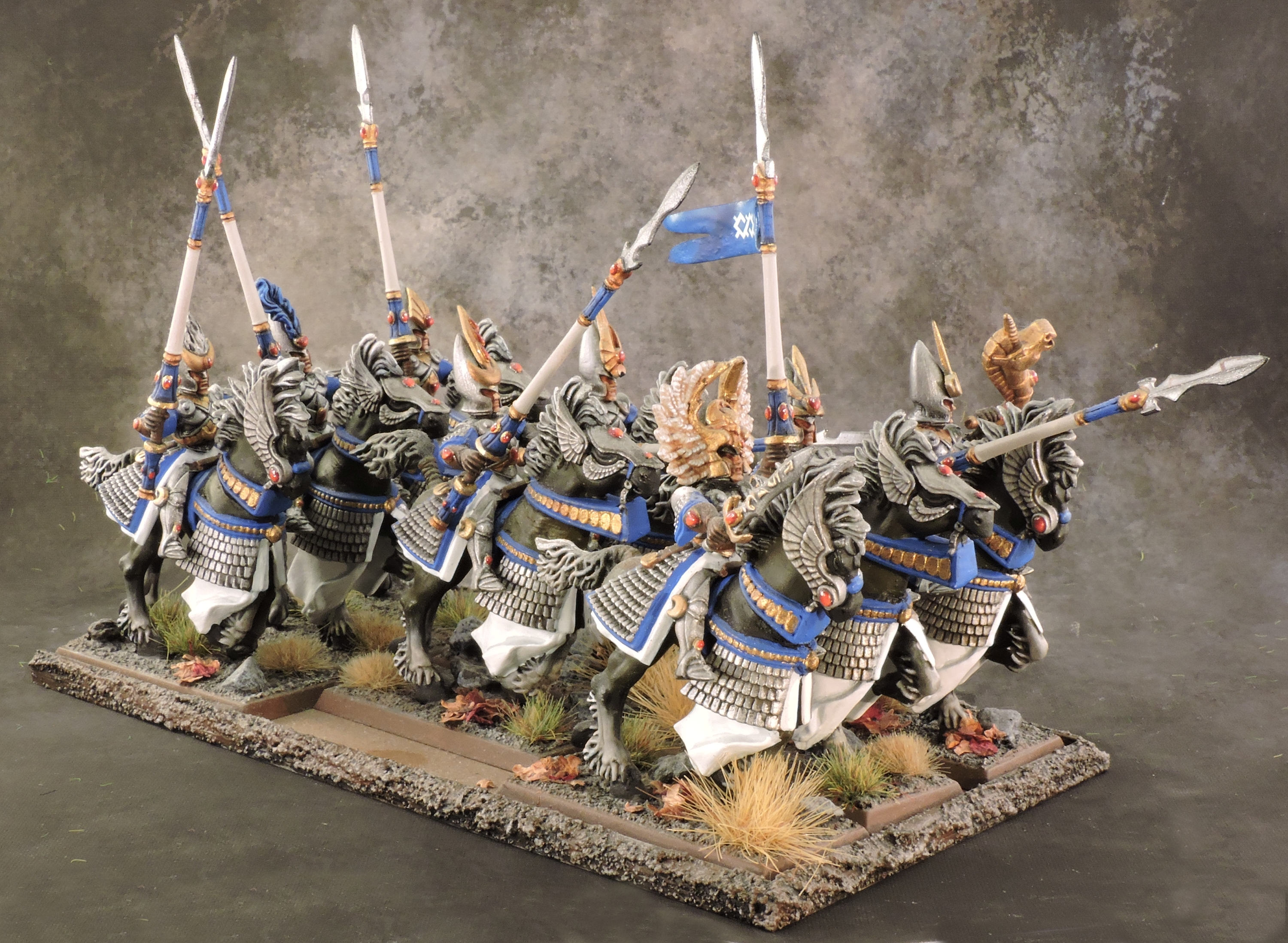 The elven army has plenty of cavalry choices in each weight class. Leading the charge are the heavy knights of the Dragon Princes of Caledorn.