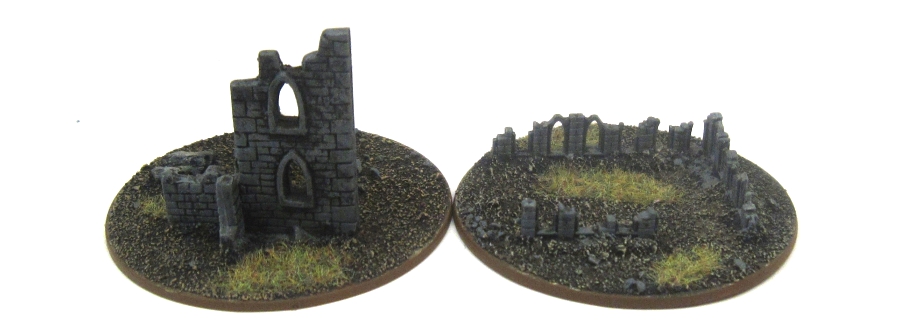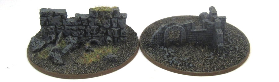 I cover bases with black pumice followed by successive drybrushing with Bestial Brown and Bleached Bone. Static grass finishes off the units. The figures are painted with the scale in mind so that usually means basic block painting followed by a wash and some spot highlights where appropriate.