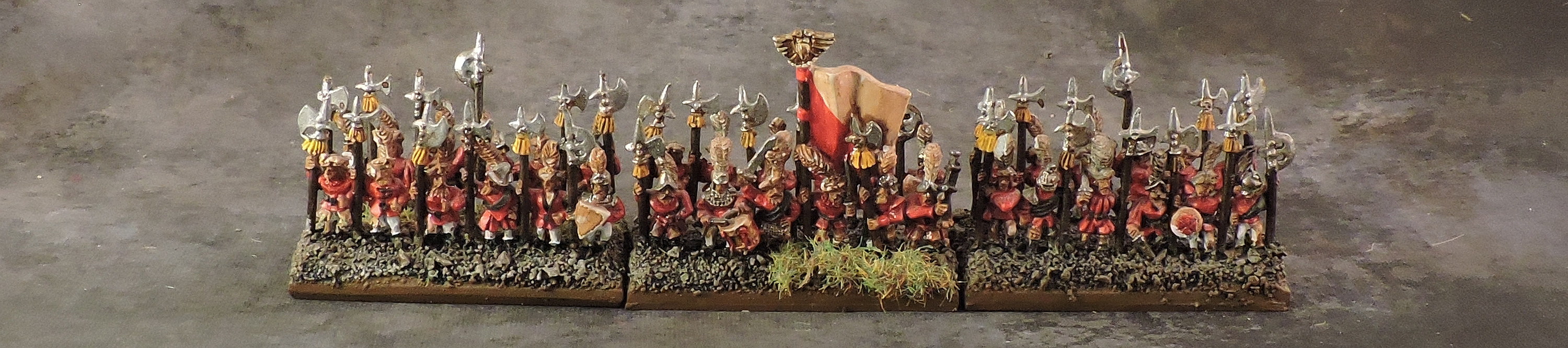 Infantry: Empire core infantry is very cheap yet reasonably capable. Good reasons to take lots of units. The main formation is a group of four units of Halberdiers supported by Skirmishers.