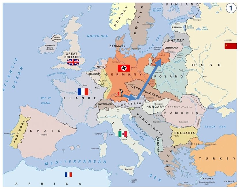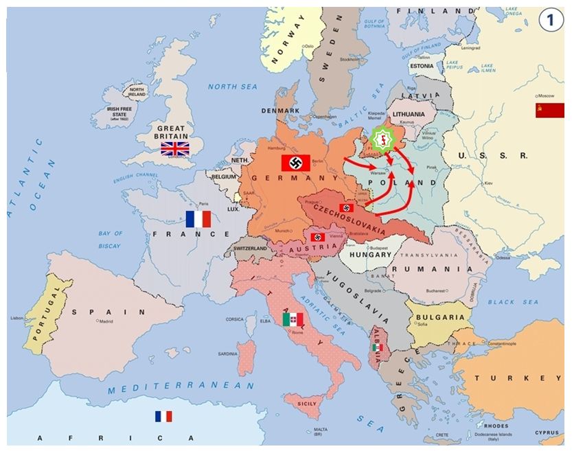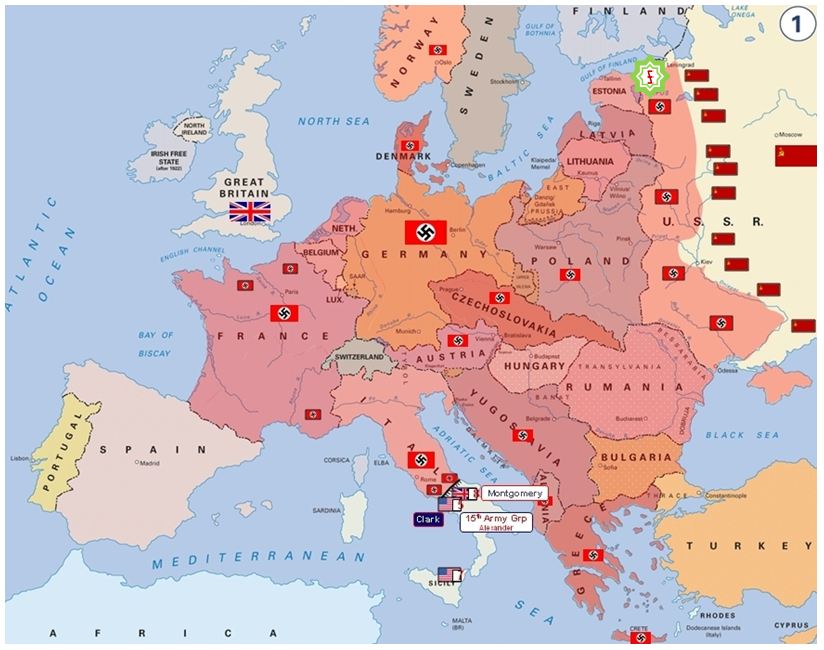 All maps are from an excellent animated power point slide deck showing a fast track version of the Second World War. I found it online and unfortunately do not know the author or origin. I have edited the slides to focus on the appropriate aspects for this campaign and remove all the other “activity indicators” for the rest of the war.
