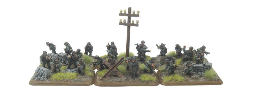 In line with the comment on uniformity in the collection building section, it is critical that the basing of figures in an army is visually consistent. Since there is a high probability that two of my armies within the same game system will encounter each other on my terrain table, I have gone further and used consistent basing across entire game systems. This doesn’t mean that every base needs to look the same. For example, my 15mm Flames of War WW2 Germans use a basing scheme that includes pieces of grey brick ruins, telephone poles, road signs, hedgehog barriers, static grass, clump foliage and two different colours of grass tuffs. The idea is to present a semi-rural landscape that would fit into most European theatres during mid-war. The UK Airborne army uses a lot of clump foliage with grass tuffs and grey boulders to give the idea of airborne units operating in bocage country in Northern France. The materials and paint schemes are the same so that the two armies wouldn’t look out of place facing each other.