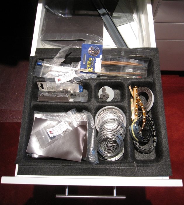 Beyond existing pieces from my Bitz Box(es), I use the usual raw materials of wargaming converters. Various forms of wood (tooth pics, popsicle sticks, balsa wood, etc.), plastic card of different thickness and patterns, metal parts (chains, wire, rod, etc.), magnets of different sizes, and sculpting materials (Green Stuff, putty, etc.). One of the drawer columns in my gaming room is devoted to the store of such materials and the associated tools.