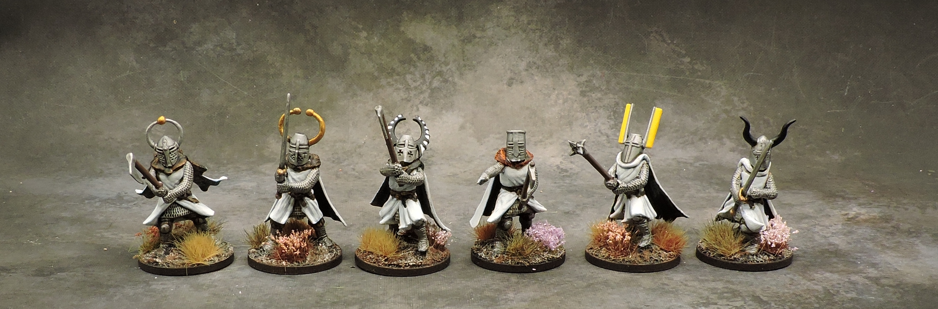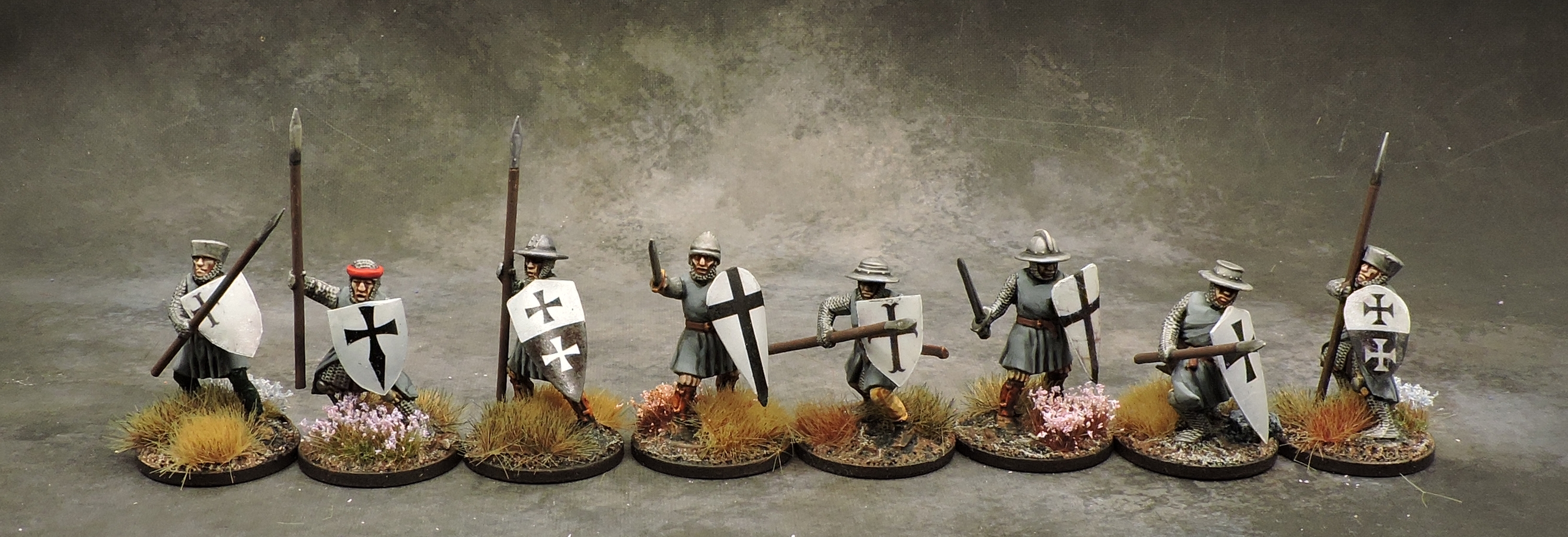Warriors: Lay brothers, colloquially known as “Graumäntler” (grey clocks) for their grey tunics, supported the knights in battle. These come mounted, on foot, and with crossbows. The crossbow unit includes up to 12 figures to provide additional punch.