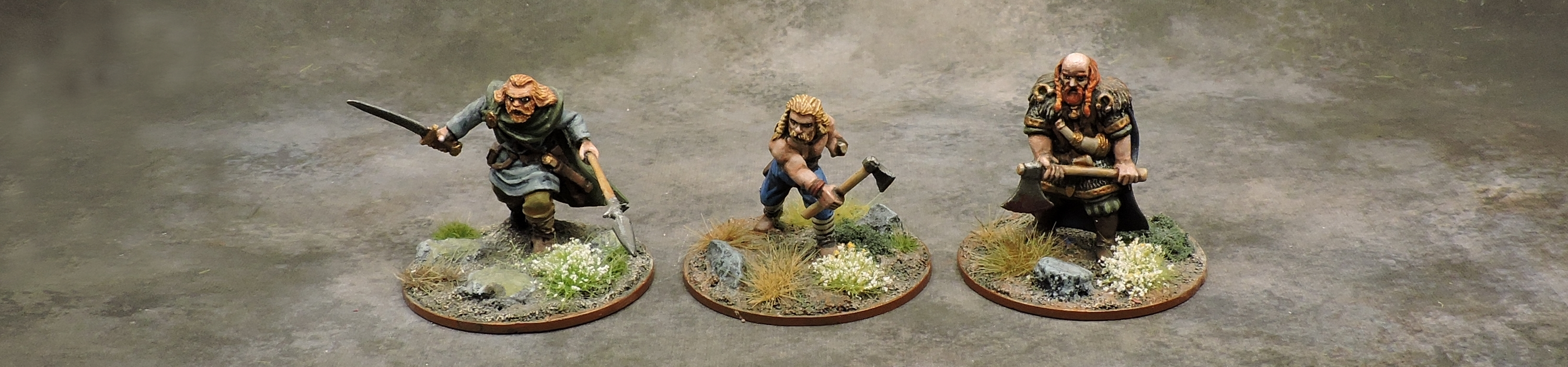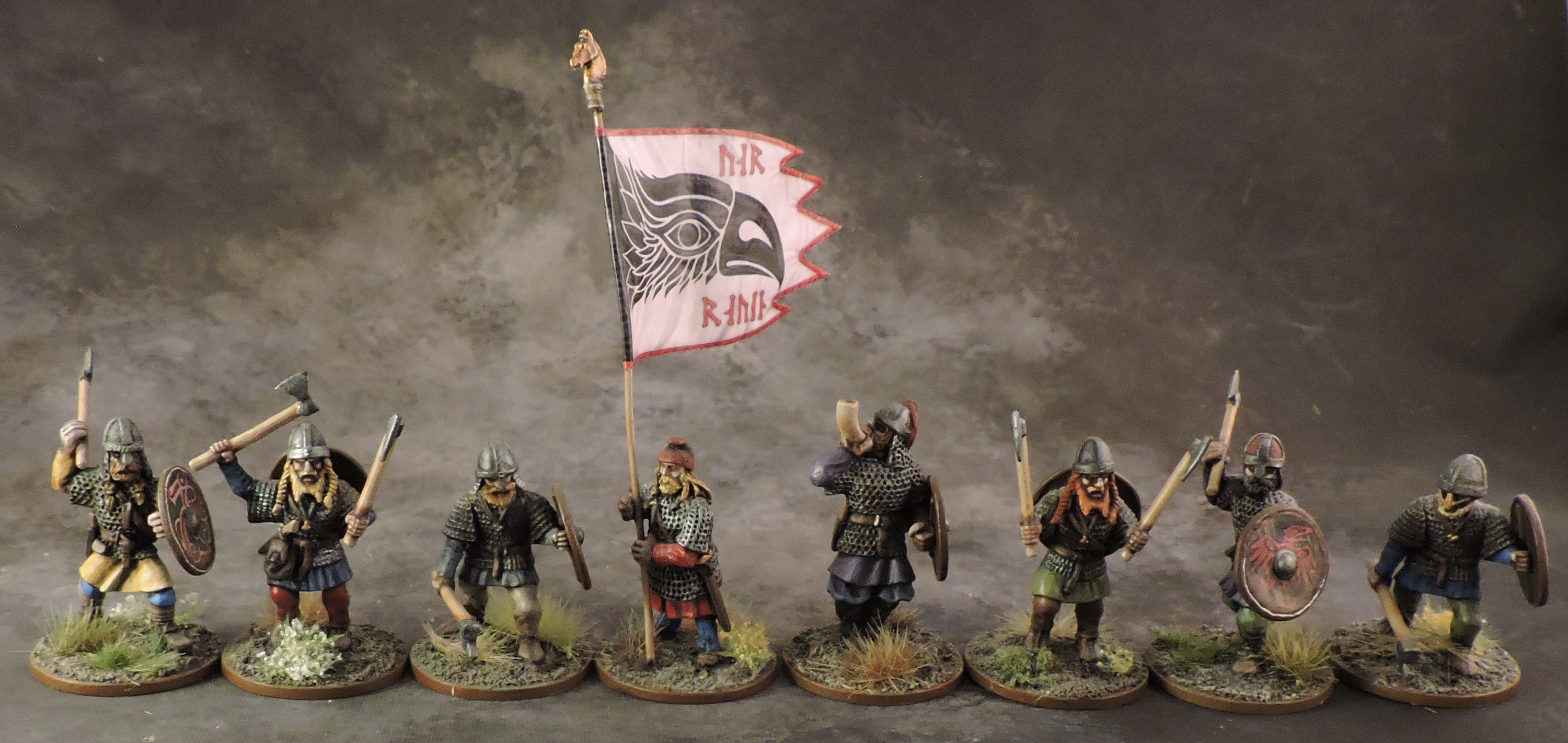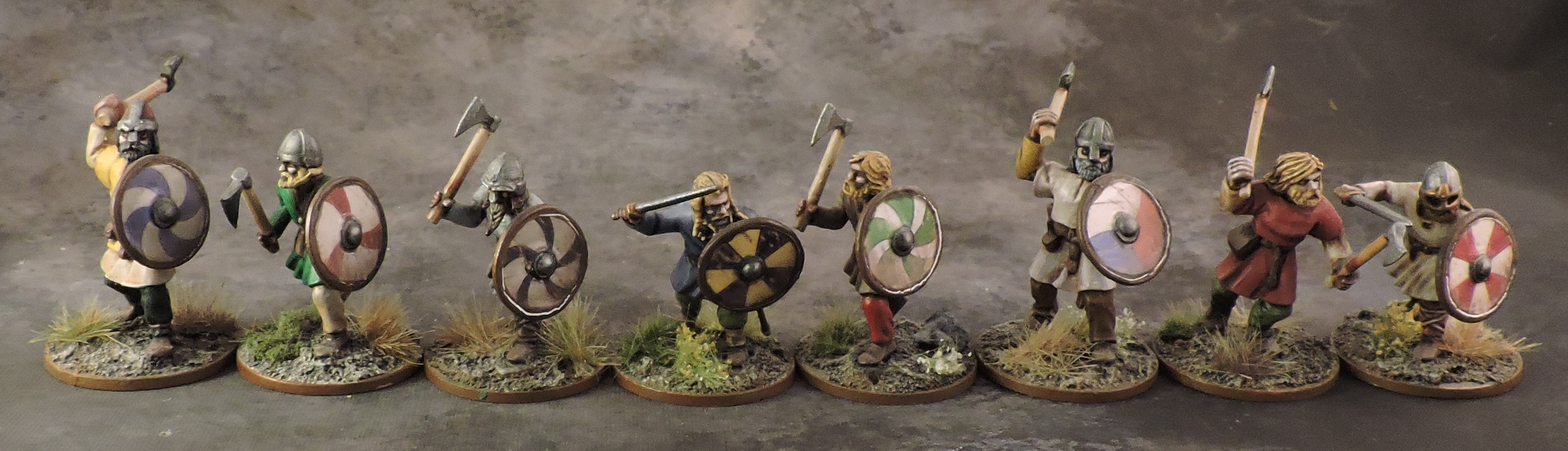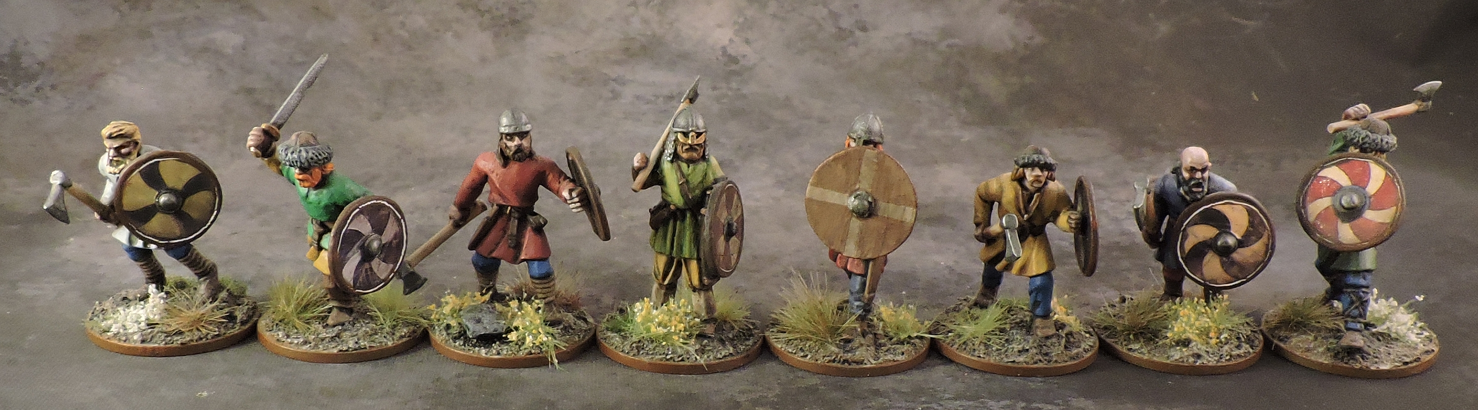 Warriors: The Viking warriors are a mix of plastic and metal figures to give a bit of variety. I focused on axes for the Bondi to distinguish them from the spear-heavy Anglo-Saxons and other otherwise similar forces.