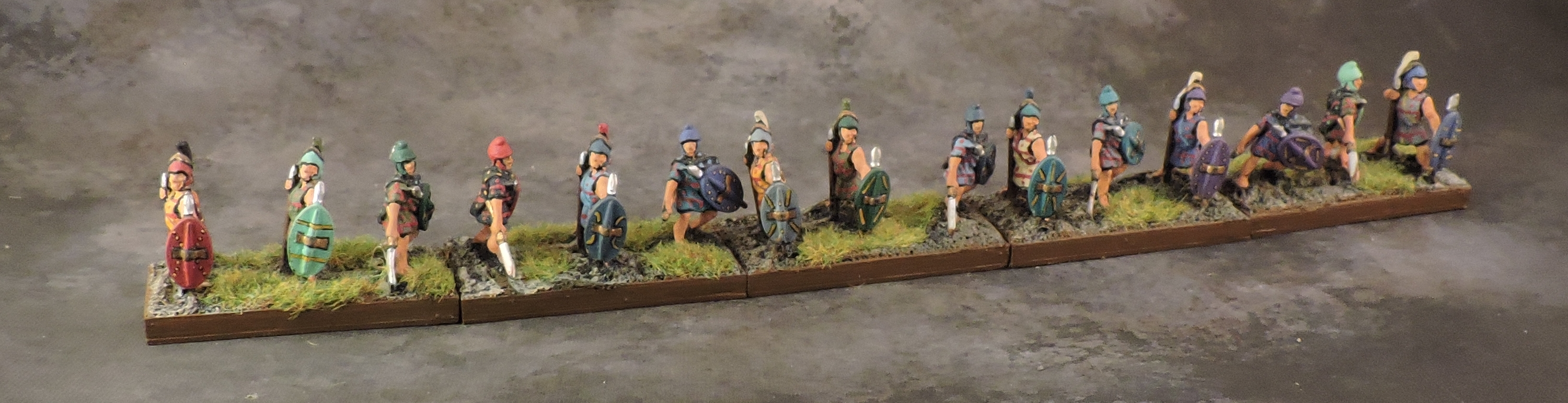 Auxilia: The EBay purchase came with two types of Auxilia figures though the I/48 army list only offers 3-figure Light Auxilia. In game terms both 3-figure and 4-figure Auxilia work the same so I am using 5 based of “Light Auxilia” and two bases of “Heavy Auxilia”