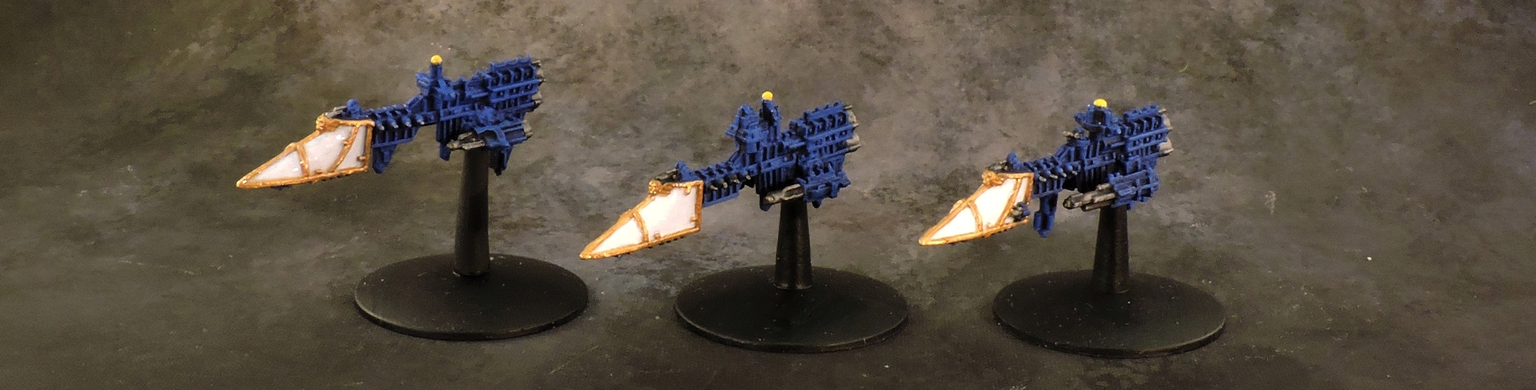 Grand Cruisers: Grand Cruisers were introduced with the Armada supplement as kind of a pocket battleship. More fire power than conventional cruisers but at a point cost that is still affordable in smaller games.