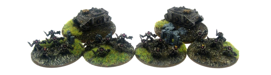Iron Warrior Scouts: Two Forlorn Hope units with Rhinos provide a bit of scouting power. I used imperial scout marine figures to emphasis the regimental theme. Mobile support comes from a bike retinue based on first generation space marine bikes.