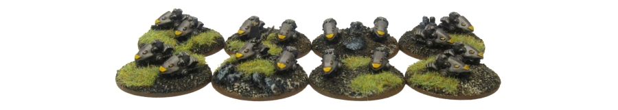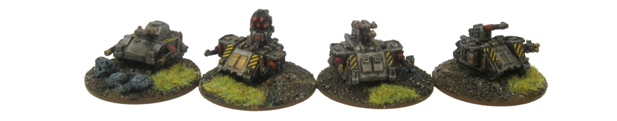Iron Cult Tanks: The Cult can mobilize a single element of Leman Russ tanks and a support group of three Demolishers. The tanks are a mix of all areas and the odd “field repair” with parts from my bitz box.
