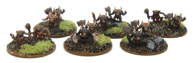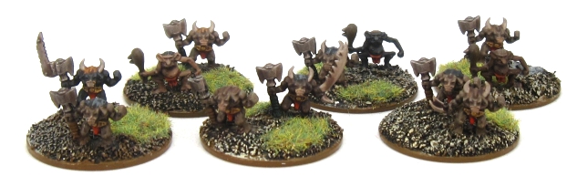 Khorne Covens: Three Mutant Covens form the core formations of a Khorne Lost and the Damned force. I kept the martial theme and went with a mix of beastmen and blood letter for the regular mutants. The Big Mutants are based on the old Minotaur and Troll figures with some simple conversions to break up the monotony. The leaders of the Covens are Chaos Champions and a really big guy that can serve as the cult leader.