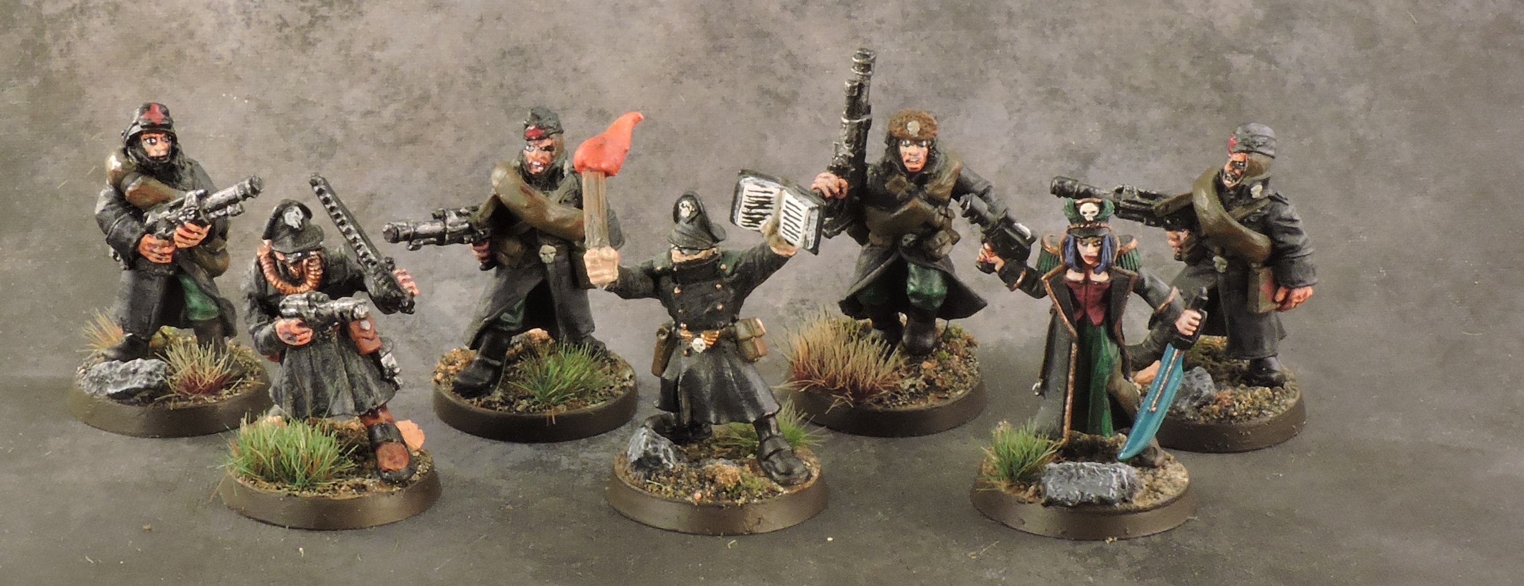 The Commissariat keeps morale up – by force if needed – and is composed of some old school Commissars as well as “Commissar-Cadets” which are old Valhallan figures that I used with the Priest rules as attachments to individual squads.