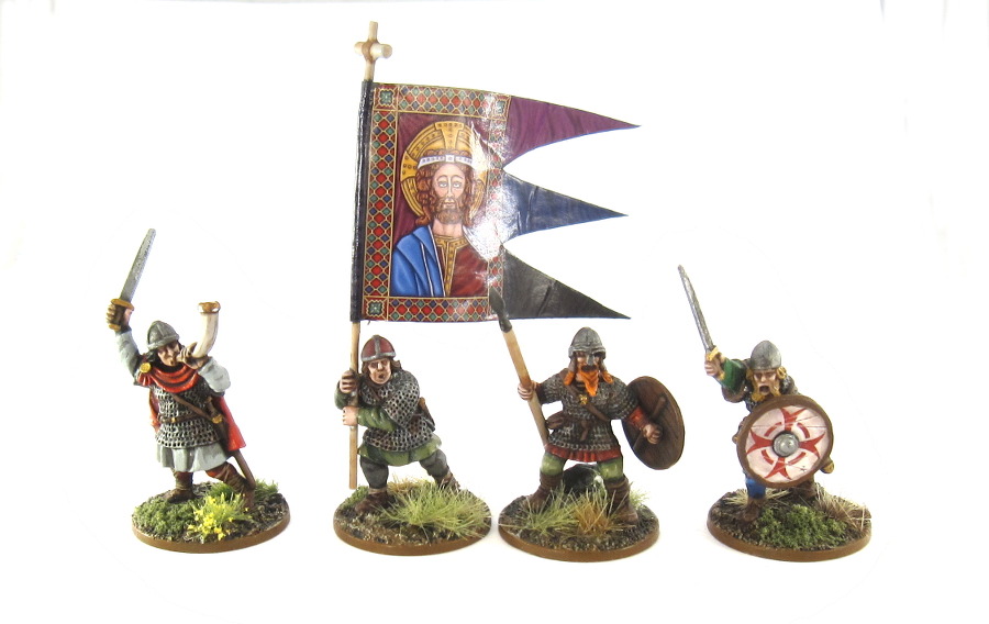 Again, I am behind in posting (and photographing) models. I have now completed the rest of the Anglo-Saxon Warband with the addition of two units of Hearthguard and a generic Warlord. I will be painting some of the special leaders later, as well as adding a generic pool of peasants from which different warbands can draw their levy contingent.