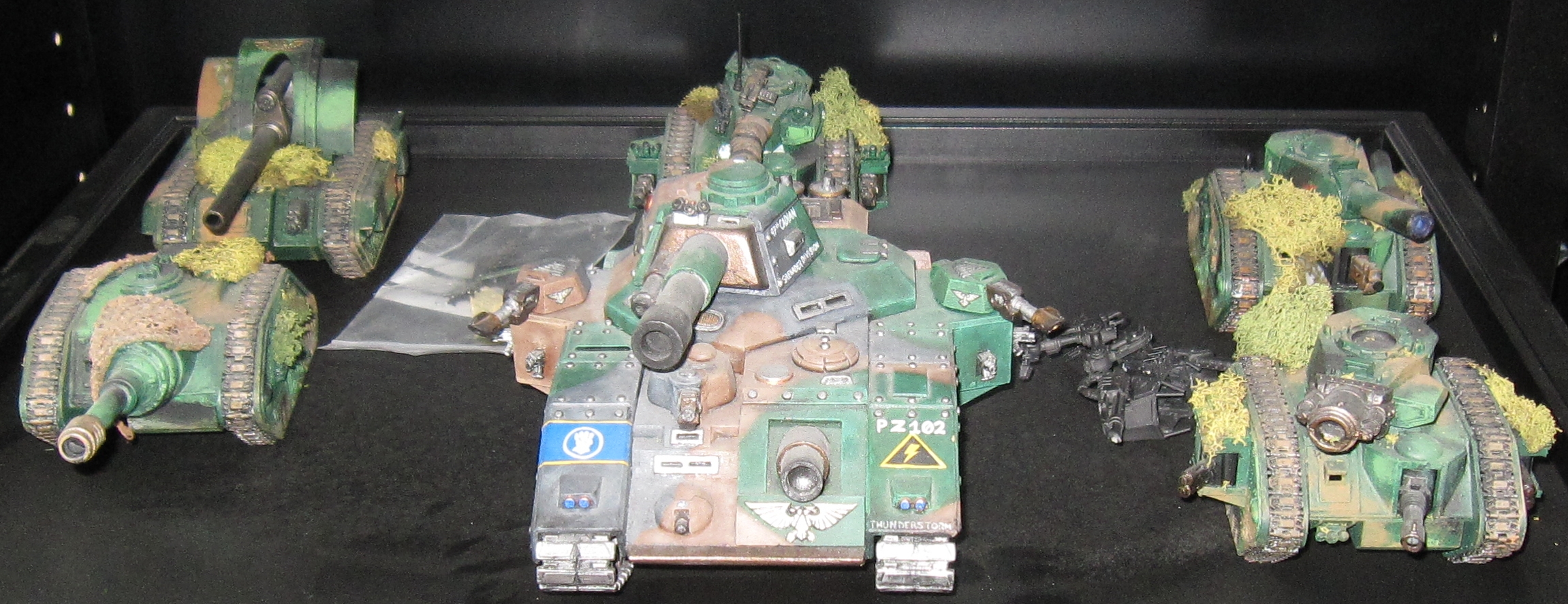 And their big brothers from the Warhammer 40k cabinet. This was actually my very first 40k army. The infantry models are all from the old Rogue Trader plastic kit, so much of this stuff is close to two decades old. The Baneblade is from Armorcast.