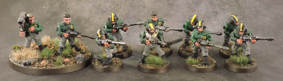 While waiting for the final wash to dry on the LatD models I painted up my last Imperial Guard infantry company. Nothing fancy as I had to match the colour scheme of the rest of the army. I have updated the Epic IG page already. This completes my Epic IG army with no other IG models to be found (unpainted) in the hobby room (well, except those that are assigned to the as yet completely unpainted Adeptus Mechanicus army but that’s a different project…).