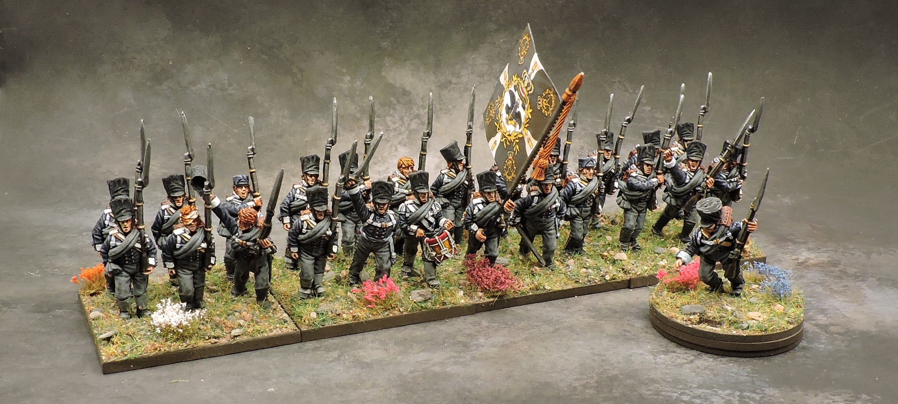 With the Prussian cavalry and artillery completed, it’s back to the infantry. I finished 2. Infanterie Regiment with the usual three battalions, skirmishers and attached volunteer Jaeger.