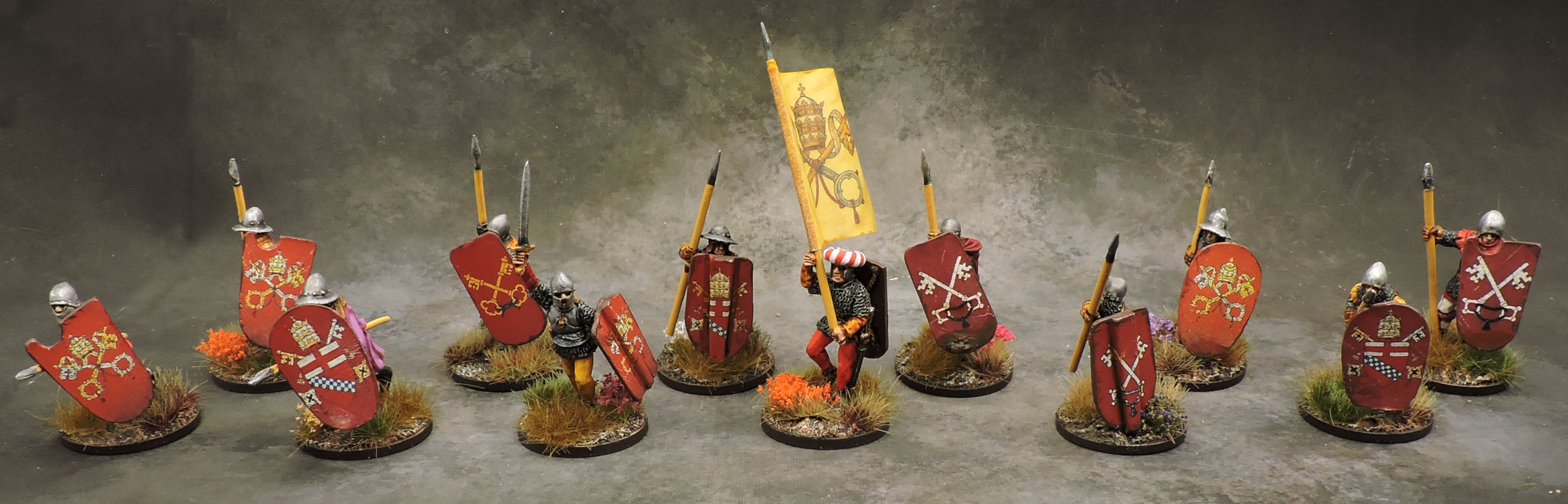 I recently acquired the tools to make high quality decals – both printing them and generating suitable images. Where possible, I like to support artists so most of my shield decals and flags are from commercial suppliers, but I am now able to cover designs that aren’t available. Below are examples from this month. All for Saga Age of Chivalry.